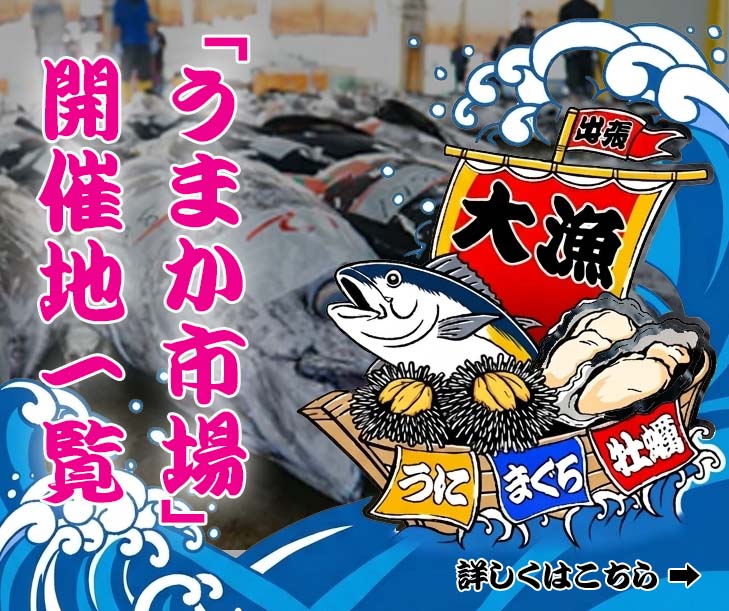 うまか市場は固定店舗ではなく、全国各地へ出張して開催するイベント型の浜焼き市場です。
