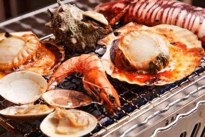 他にも牡蠣、ホタテ、エビ、など、新鮮な海の幸を豪快に焼いて楽しむセルフ浜焼きスタイルが魅力です。